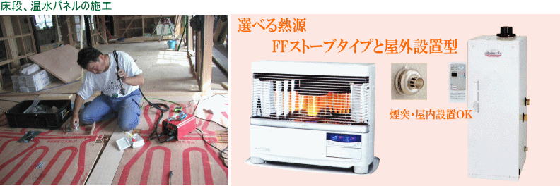 | 反射式FF屋外吸排気タイプの床暖房システムもございます。 リフォーム時意外にも床の上にひくことができるマッドタイプ も有りますのでご相談下さい。 手間いらずの暖か快適空間作りを提案させて頂きます。 |